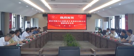 9月27日,我校与江西胜龙牛业集团有限公司共建大学生创新创业实践基地签约及授牌仪式,在江西胜龙牛业集团有限公司莲花公司胜龙肉牛产业科创中心举行。校党委书记邱晓辉,教务处、科研处、党政办、创新创业学院、市品牌研究中心等部门相关负责人,莲花县委副书记钟华,县农业农村局党委书记、县乡村振兴局党组书记、局长胡程,县农业农村局局长李小辉,良坊镇党委书记周晓鸥以及江西胜龙牛业集团有限公司总经理周日龙出席签约仪式。活动由该公司莲花公司副总经理李艳主持。