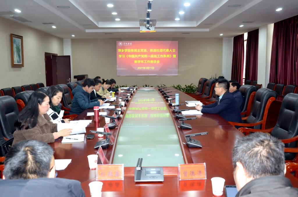 3月11日下午,我校在至善楼第一会议室召开各民主党派、统战社团代表人士学习《中国共产党统一战线工作条例》暨新学年工作座谈会。党委委员、副校长刘卫林出