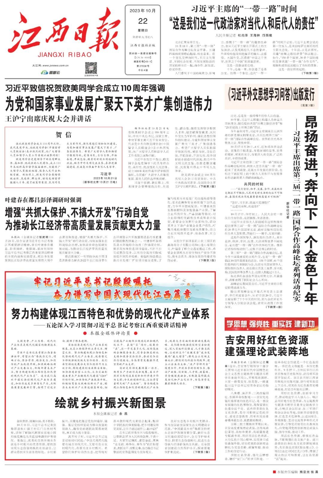让我们坚定不移沿着习近平总书记指引的方向砥砺前行,努力构建体现江西特色和优势的现代化产业体系,为高质量发展赢得优势、赢得主动,为奋力谱写中国式现代化江西篇章构筑坚实的物质技术基础。
