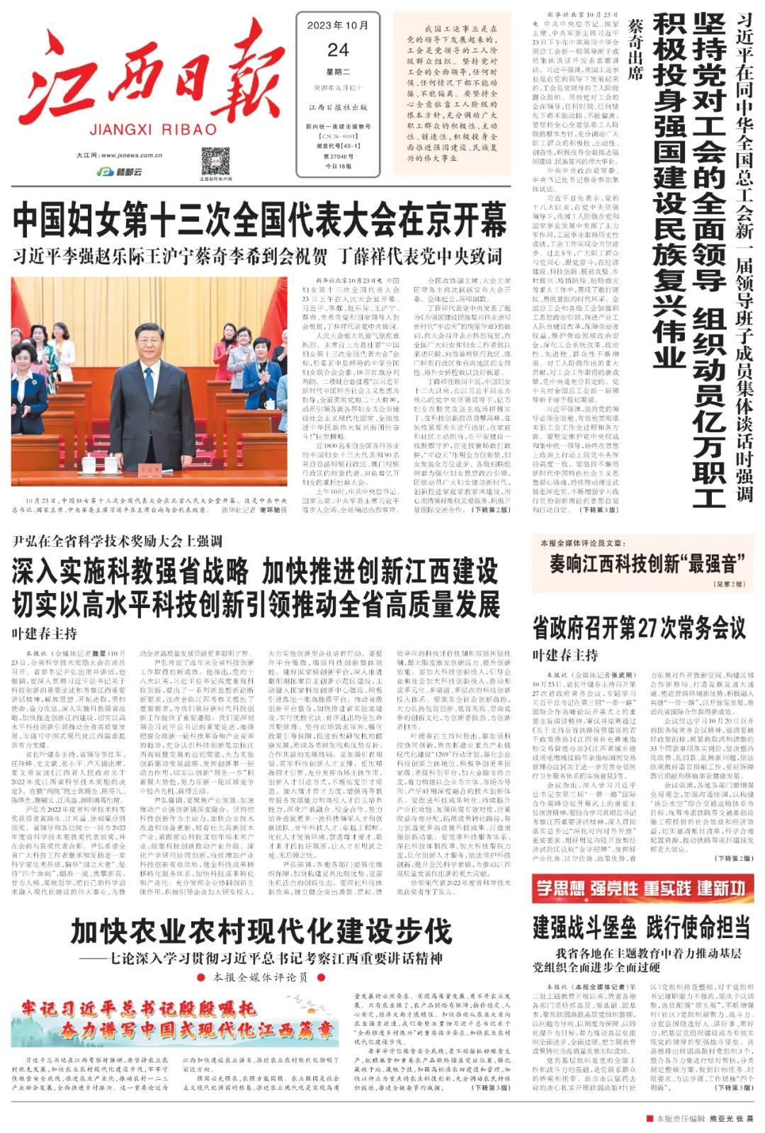 习近平总书记在江西考察时强调,要坚持农业农村优先发展,加快农业农村现代化建设步伐,牢牢守住粮食安全底线,推进农业产业化,推动农村一二三产业融合发展,全面推进乡村振兴。这一重要论述为江西加快建设农业强省、推进农业农村现代化指明了前进方向。