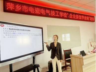 近年来,秦梦黎响应学院与地方的政策,参加青年博士团,服务地方经济发展。先后与湘东区企业深入合作,解决企业发展中的关键技术问题,挂职江西百新电瓷电气有限公司副总经理,主持参与了公司专利申请、项目申报、论文拟写等各方面工作。在为企业带来创新动力的同时,也要将理论与实践有机结合起来,将学术论文写在车间里,为企业高质量转型、地方经济社会发展作出贡献。积极参与萍乡市政府项目“企业新型学徒制培训”,为芦溪电瓷企业员工进行电瓷相关工艺及性能检测等课程的培训,已为中材电瓷、百新电瓷和信源电力等多家企业200余人授课,效果显著。
