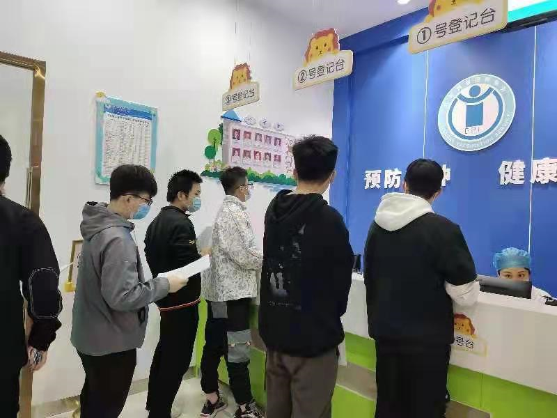 第一批接种疫苗的学生佩戴口罩,排着整齐的队伍进入接种点。填写表格、登记身份信息、接种疫苗、留观区等候,接种现场井然有序,各环节的工作有条不紊。