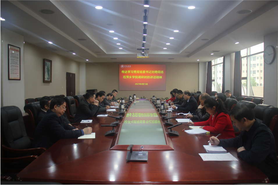 为深入贯彻刘奇书记在校调研期间讲话精神,4月13日,我校在至善楼第一会议室召开专题会议,传达学习省委书记刘奇在我校调研时的讲话精神。在家校领导出席会议。党政办、人事处、学工处、团委、教务处、后勤处、保卫处等相关部门负责同志参加会议。会议由校党委副书记、校长史焕平主持。