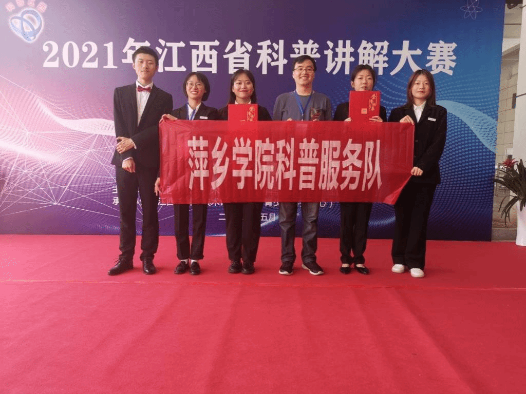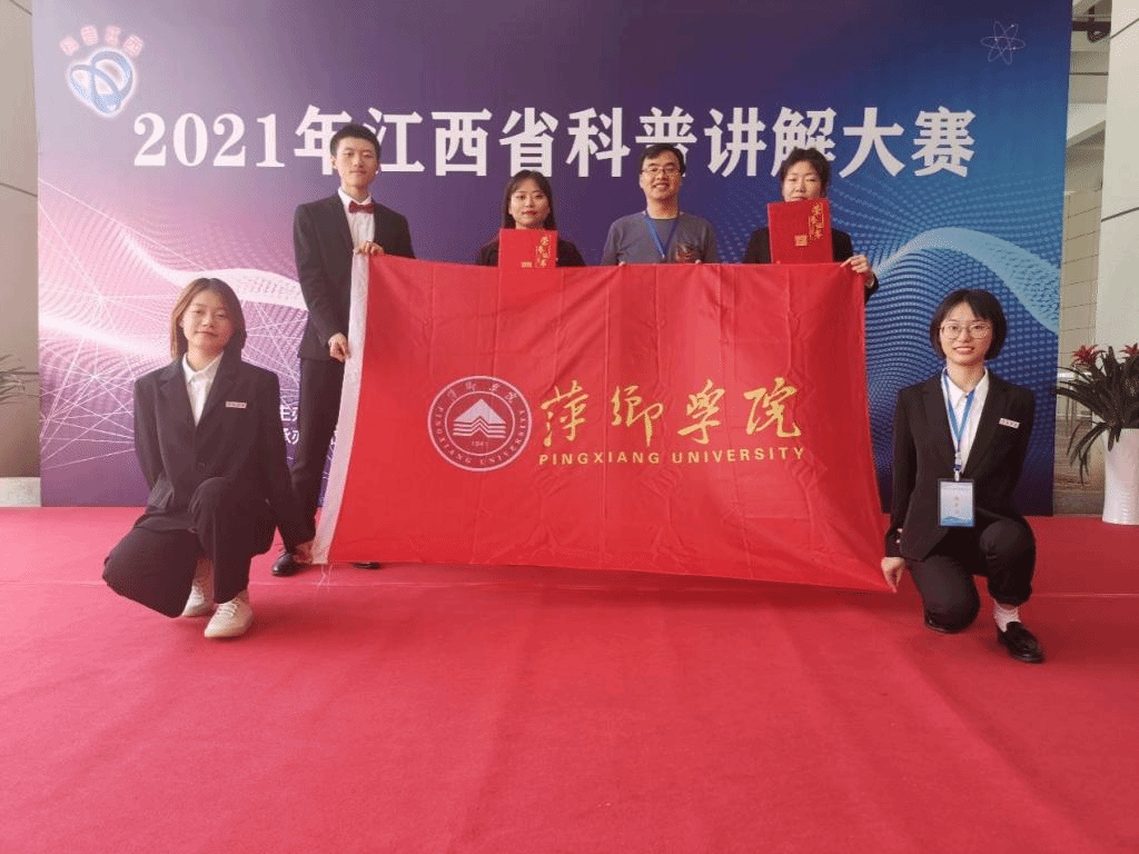 我校来自材料与化学工程学院选手米婷婷同学的《釉面脉络》和信息与计算机工程学院选手刘培仪同学的《散落星河的蓝眼泪》,在各自赛场分别以第19名和第25名脱颖而出,最终获得江西省科普讲解大赛优秀奖,同时两位同学被授予“江西省优秀科普使者”称号,为学校争得了荣誉。