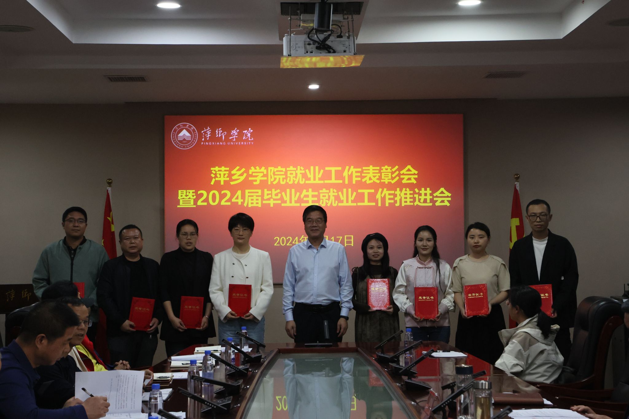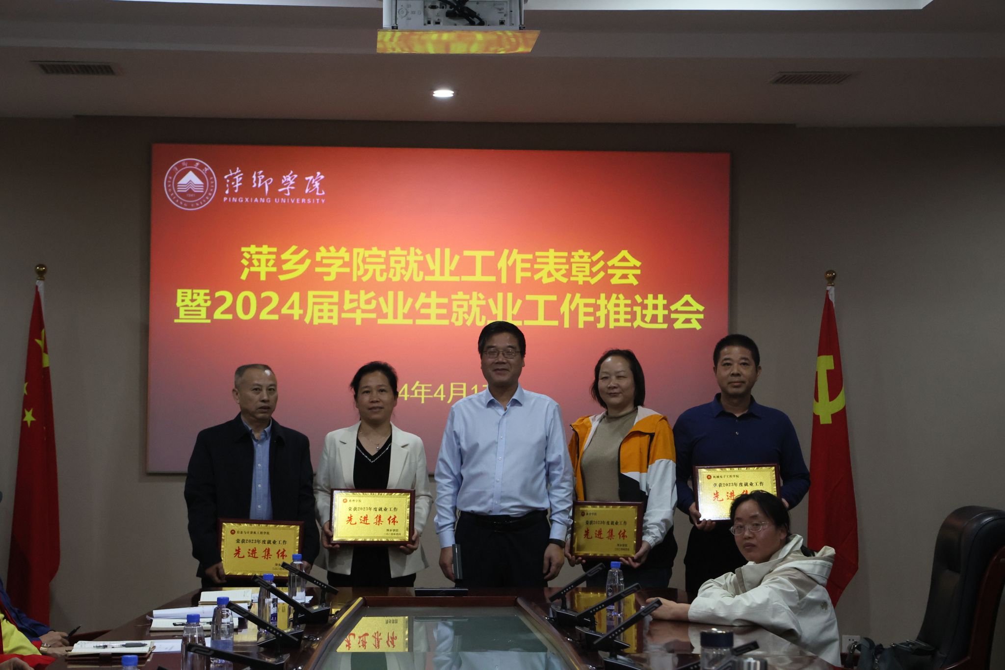 郭伟宣读了《萍乡学院关于表彰2023年度就业工作先进集体和先进个人的决定》。邱晓辉为获得萍乡学院2023年度就业工作先进集体的体育学院、信息与计算机工程学院、机械电子工程学院、教育学院颁发了奖牌,为获得萍乡学院2023年度就业工作先进个人代表颁发了证书。