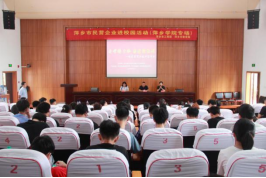 为更好的传承优秀企业家精神,帮助学生树立良好的创业就业观和人生价值观,6月25日上午,我校在学术报告厅举办主题为“传好接力棒、奋进新征程”的民营企业进校园(萍乡学院专场)活动。活动由我校和市工商联主办,创新创业学院、团委、招生就业处承办。校党委委员、副校长郭伟,市工商联主席贺灿梅,市工商联副主席吴小辉,民盟市委会主委、教育局副局长李敏出席活动。计财处、创新创业学院、团委、招生就业处等部门负责人和民营企业家代表参加活动。