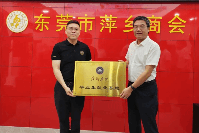 5月19日上午,邱晓辉一行在校友陪同下来到东莞市萍乡商会访企拓岗,与商会负责人以及企业代表座谈,并向东莞市萍乡商会颁发了“萍乡学院毕业生就业基地”牌匾。