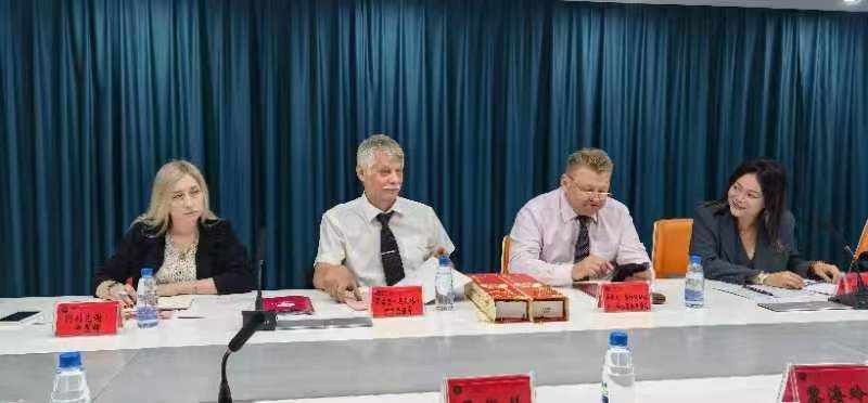 吴代赦代表学校对白俄罗斯国立大学国际萨哈罗夫环境研究所所长一行表示欢迎,并简要介绍学校情况。Rodzkin Aleh先生介绍白俄罗斯国立大学及研究所情况和办学特色,以及学校留学生情况。