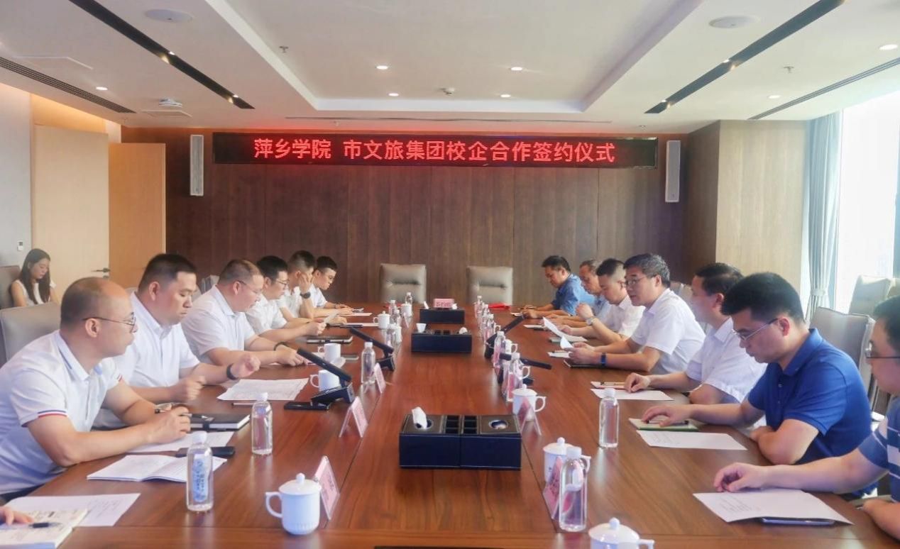 7月12日,我校与萍乡市文旅集团校企合作签约仪式在萍乡市投发大厦举行。校党委书记邱晓辉,校党委委员、副校长陈永国,萍乡市文旅集团党委书记、董事长易勇平,萍乡市文旅集团党委副书记、总经理王绍林,我校党政办、招生就业处、相关二级学院负责人及萍乡市文旅集团相关工作人员参加仪式。