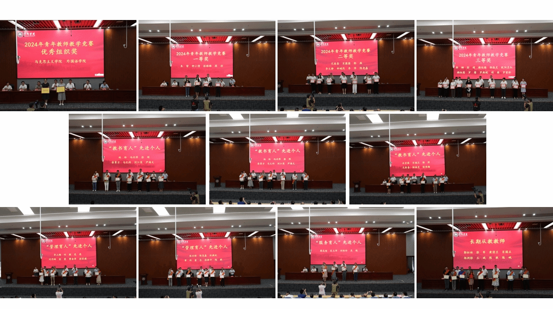 党委委员、副院长刘培圣宣读了《2024年颁发长期从教荣誉证书的决定》《2024年度“三育人”先进个人表彰决定》《宣读第五届青年教师教学竞赛获奖决定》。与会领导为受表彰教师颁发了荣誉证书并合影留念。新入职教师代表为长期从教教师献上鲜花,表达对他们崇高的敬意,长期从教教师为新入职教师代表佩戴校徽,寄予青年才俊以美好的期望,完成责任与使命的交接与延续。从教30周年教师代表杨剑影、获奖教师代表尹海文、新教师代表曹建洋分别结合自己的工作实际和切身感受,对教师这一岗位诠释了自己的理解,引发了参会教师们的强烈情感共鸣。