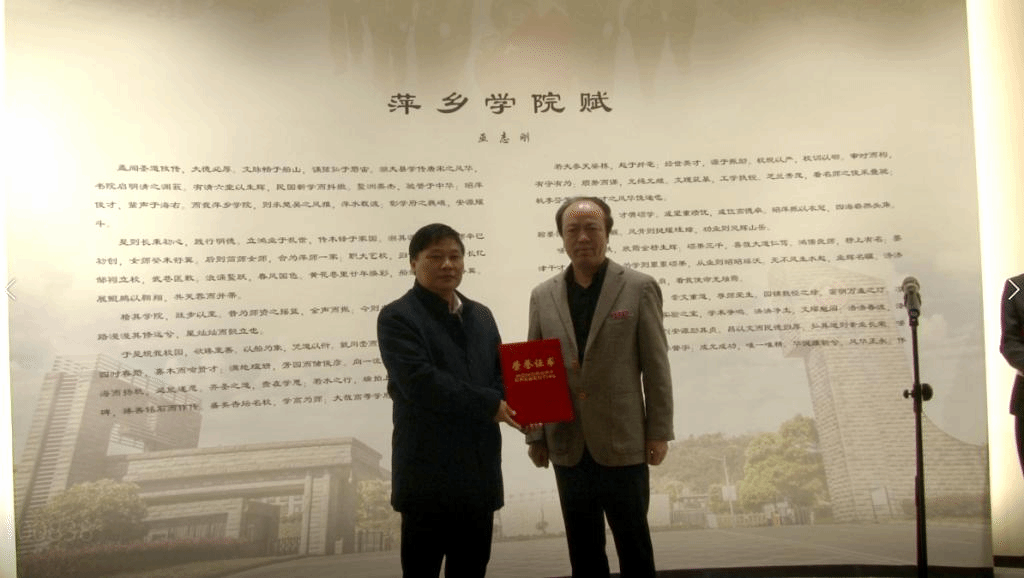 郭伟就《萍乡学院赋》作者及创作情况作了介绍。《萍乡学院赋》是巫志刚先生在学校建校80周年之际,特为校史馆而创作的,同时,他对巫志刚先生浓厚的母校情怀和辛苦付出表示衷心的感谢。