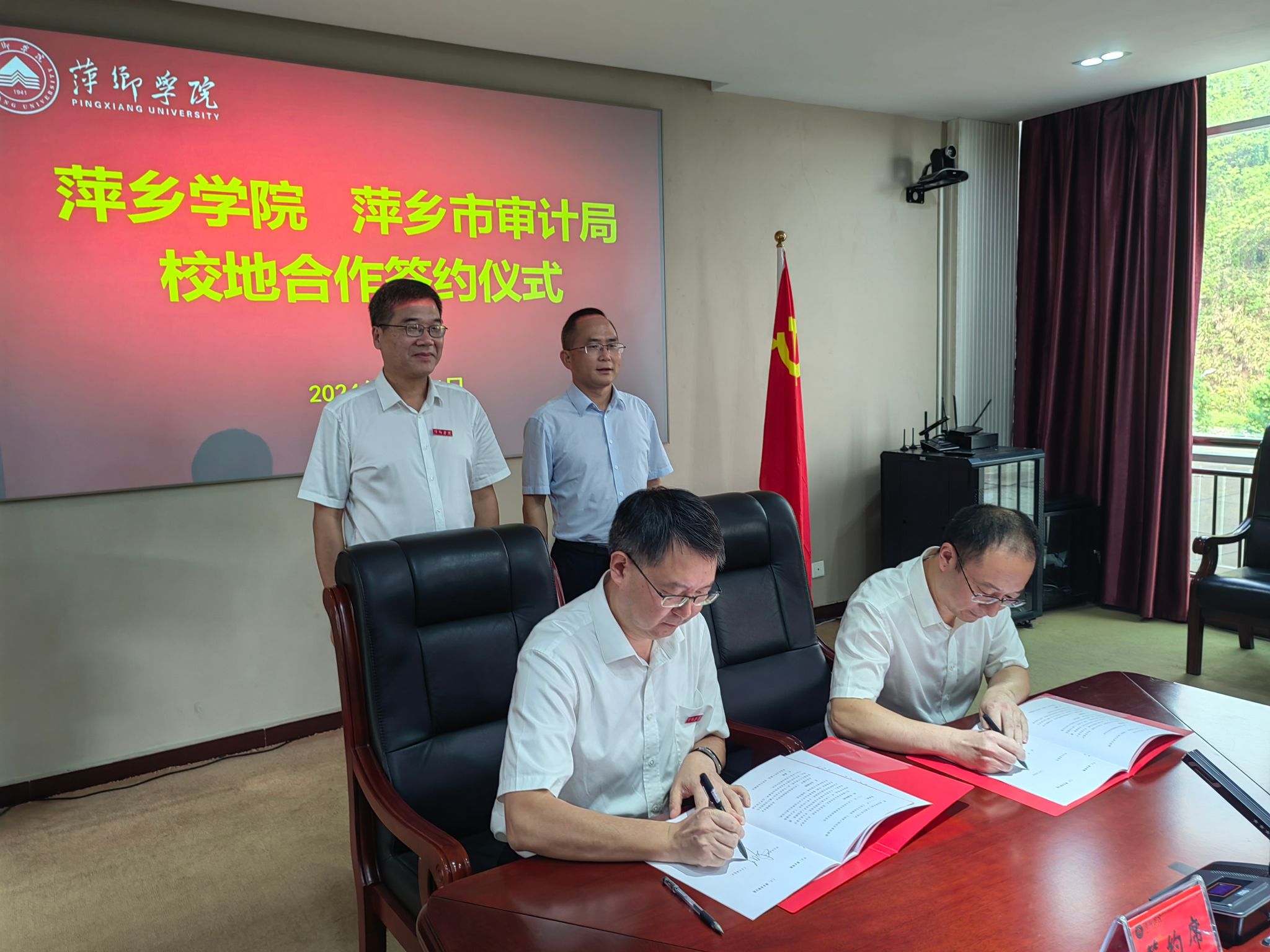 为推进全国教育大会精神在学校落地落细,有校促进学校向应用型大学转型发展,切实提升我校学生的专业技能水平,同时满足地方部门用人需求,充分发挥校地双方的资源优势,助推地方经济社会发展。9月24日上午,我校与萍乡市审计局校地产学研合作框架协议签约仪式在至善楼第一会议室举行。萍乡市审计局党组书记、局长石文兵,市审计局党组成员、副局长陈博韬,市委审计办秘书科科长、市审计局党总支专职副书记文婷,我校党委书记邱晓辉,副校长吴代赦及相关部门负责同志参加协议签订仪式。