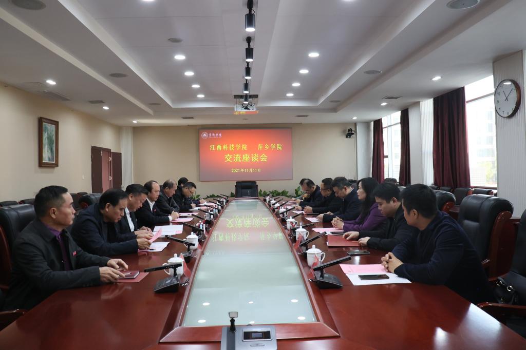 校党委书记陈金印向江西科技学院长期以来对我校建设发展的关心表示感谢,对江西科技学院在办学规模、实践教学、学校建设等方面予以充分肯定,并就近年来我校的发展变化以及下一步学校的工作打算作了交流。他说,我校将以萍乡市委市政府支持学校高质量发展的若干举措为契机,加快转型步伐,提升服务地方经济社会发展的水平,为萍乡经济社会发展贡献力量,并希望两校能够密切联系,取长补短,共谋发展。