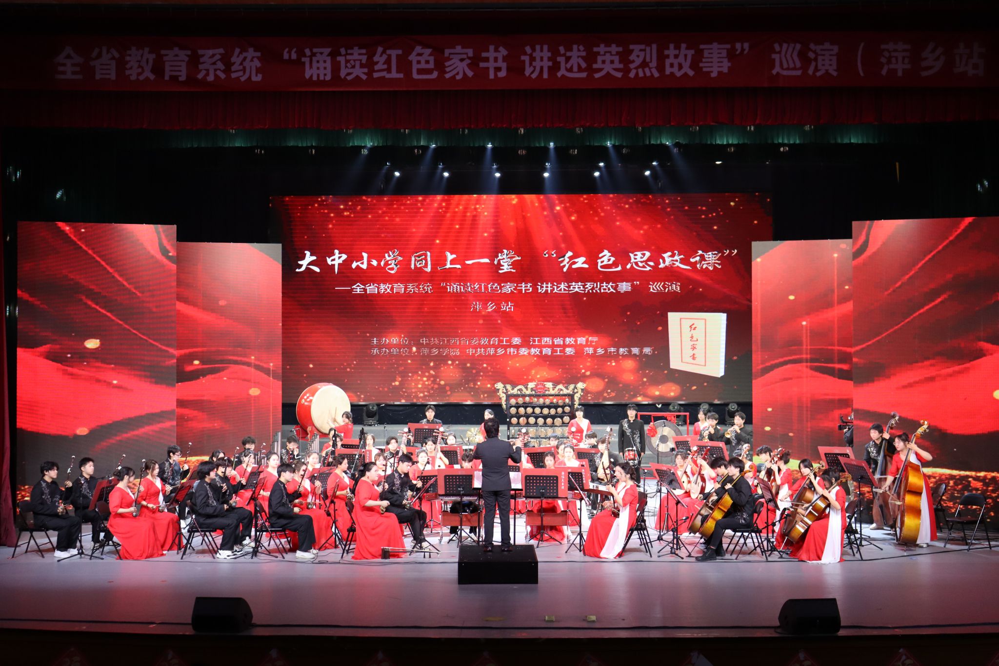 10月26日下午,由中共江西省委教育工委、江西省教育厅主办,萍乡学院、中共萍乡市委教育工委、萍乡市教育局承办的大中小学同上一堂“红色思政课”——江西省教育系统“诵读红色家书,讲述英烈故事”巡演成功举行。省教育厅领导及演出单位师生近800人现场观看演出。