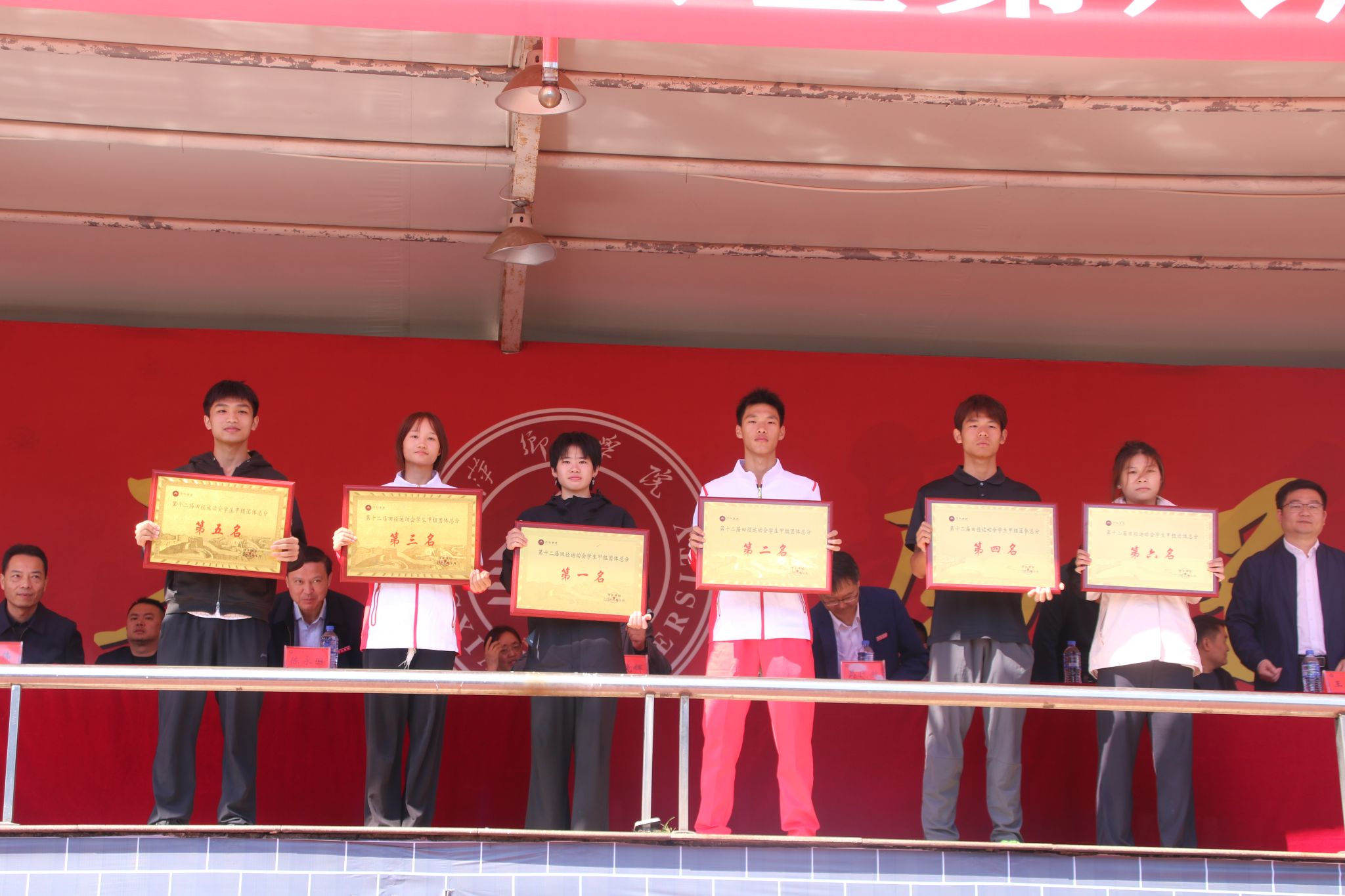 闭幕式上,裁判长肖军宣布了比赛成绩。体育学院院长陈岷宣布了获奖名单。校领导为获奖代表颁奖。