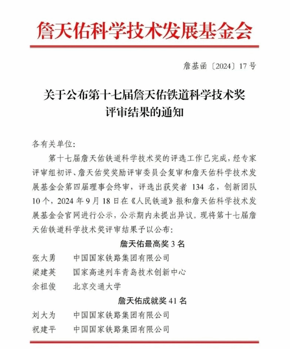 近日,第十七届詹天佑铁道科学技术奖评审结果公布,经专家评审组初评、詹天佑奖奖励评审委员会复审和詹天佑科学技术发展基金会第四届理事会终审,评选出获奖者134名,创新团队10个。其中,萍乡学院校长刘林芽荣获詹天佑成就奖。