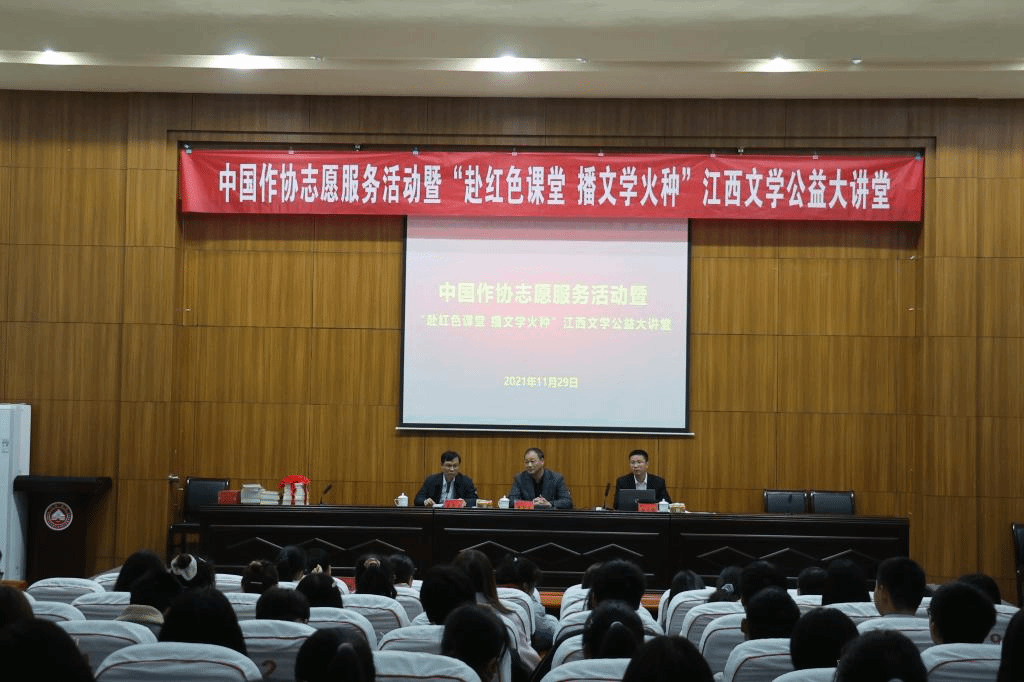 为庆祝中国共产党百年华诞,推进党史学习教育走深走实,11月29日,中国作家协会文学志愿服务示范性重点项目“赴红色课堂 播文学火种”江西文学公益大讲堂在我校举行。江西省作家协会副主席曾清生,上栗县委常委、统战部部长、民族宗教局局长、2004届校友漆宇勤出席活动,校党委委员、宣传部部长陈永国,党委宣传部有关同志、人文与传媒学院师生代表参加活动。活动由人文与传媒学院院长易志文主持。