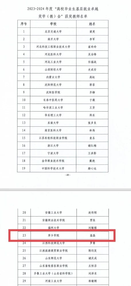近日,教育部高校学生司(高校毕业生就业服务司)公布了全国高校毕业生基层就业卓越奖获奖名单,我校温磊老师名列其中。此次共有来自全国的60名教师受表彰,其中江西省3名。