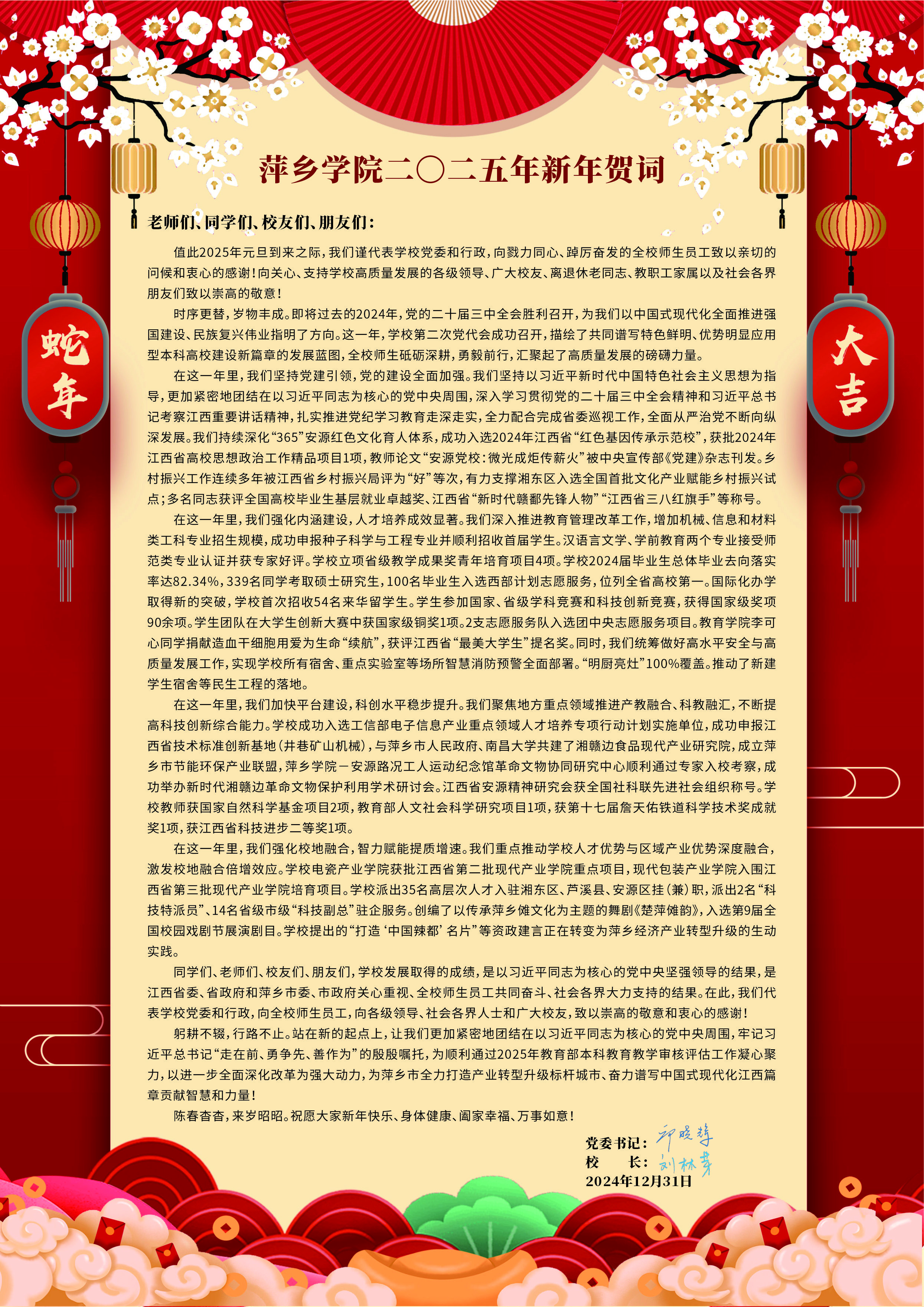 萍乡学院二〇二五年新年贺词