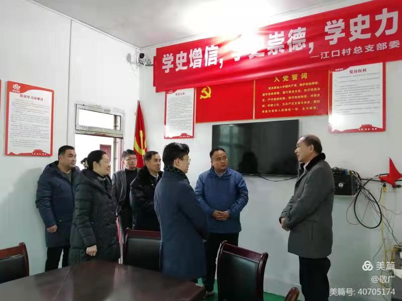 史焕平一行来到江口村委会看望驻村工作队和村支委成员,并向驻村第一书记仔细询问江口村巩固拓展脱贫攻坚成果同乡村振兴有效衔接工作开展情况以及2021年村集体经济收入情况。史焕平说,江口村支两委和驻村工作队要在各级党委、政府的坚强领导下,统一思想、凝聚力量、周密部署、正抓实干,扎实推进巩固拓展脱贫攻坚成果和乡村振兴有效衔接各项工作,要按照产业兴旺、生态宜居、生活富裕的总要求,实施乡村振兴建设行动。乡村振兴产业先行,要通过多走访多调研,要依靠群众多听取群众的意见和建议,找准适合江口村的乡村特色产业,想办法增加村集体组织和当地群众的收入。