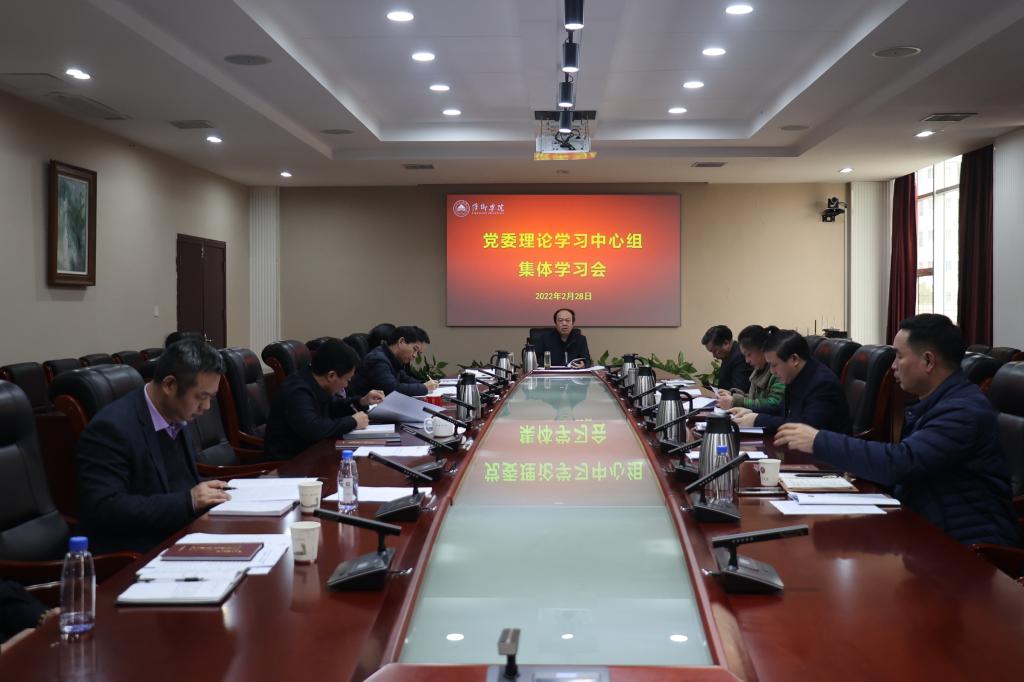 2月28日,我校在至善楼第一会议室召开党委理论学习中心组集体学习会,主要学习习近平总书记在省部级主要领导干部学习贯彻党的十九届六中全会精神专题研讨班开班式上的重要讲话精神、习近平总书记主持十九届中共中央政治局第三十六次集体学习时的重要讲话精神、省委书记易炼红同志在萍乡调研时的讲话精神等内容。党委理论学习中心组全体成员参加学习。学习会由校党委书记陈金印主持。
