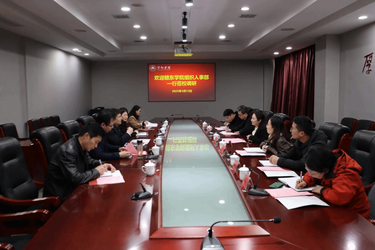 2025年3月12日,赣东学院党委委员、组织人事部负责人蔡立一行六人来校考察交流。校党委委员、组织部部长王林清陪同调研并出席座谈交流会,党委教师工作部(人事处)部长(处长)刘霞以及相关单位副职参加座谈会。会议在至善楼第二会议室举行。