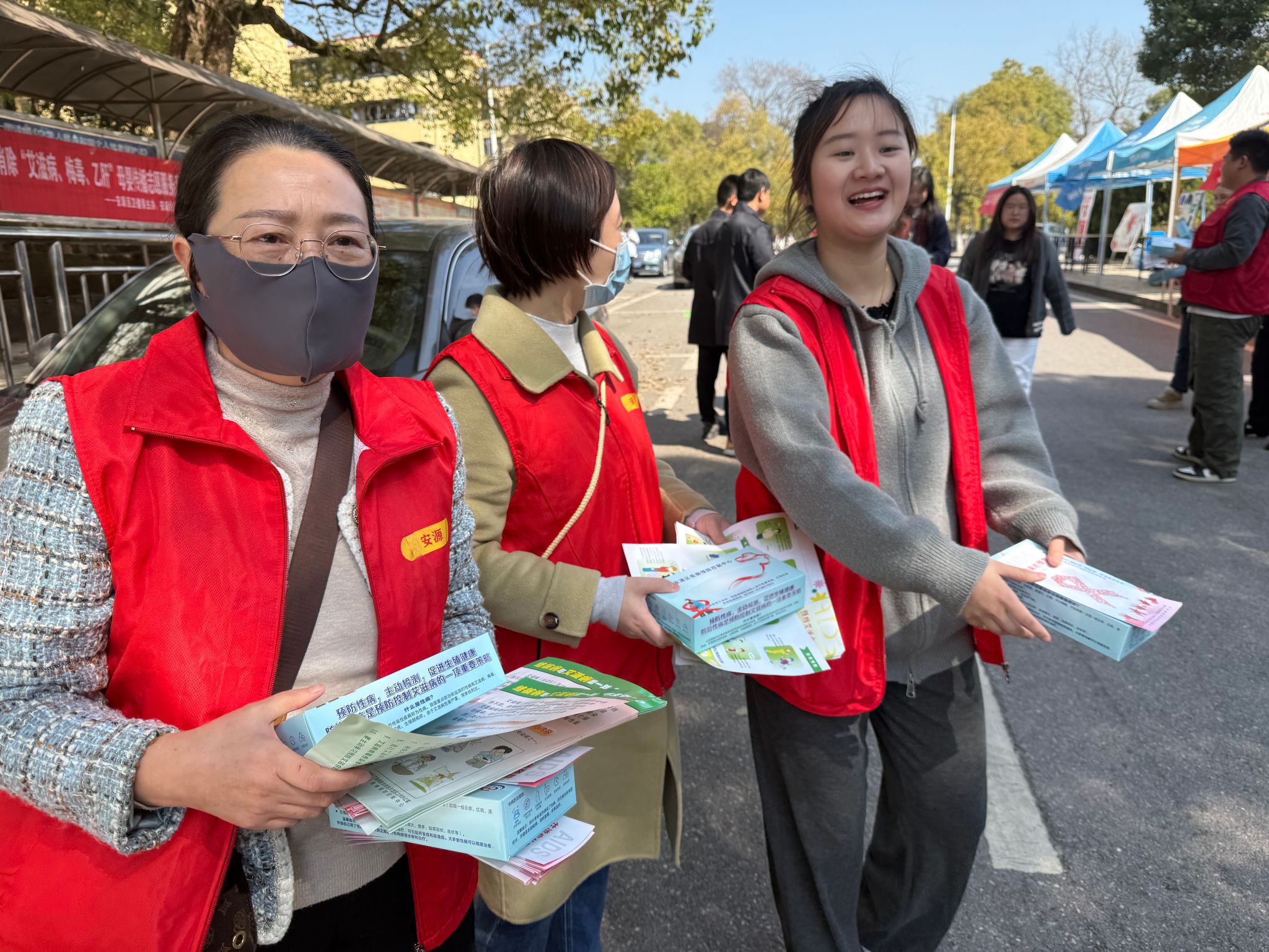 “全民参与”花式科普:活动现场设置“结核防治知识闯关”等互动专区,志愿者通过答题赠礼、将防治知识融入趣味游戏。印有“终结结核 从我做起”标语的纸巾盒、生姜皂、胖胖杯,“健康素养促进行动”的充电宝、手提袋等、指甲剪等300余份宣传品成为师生争相领取的“健康装备”。