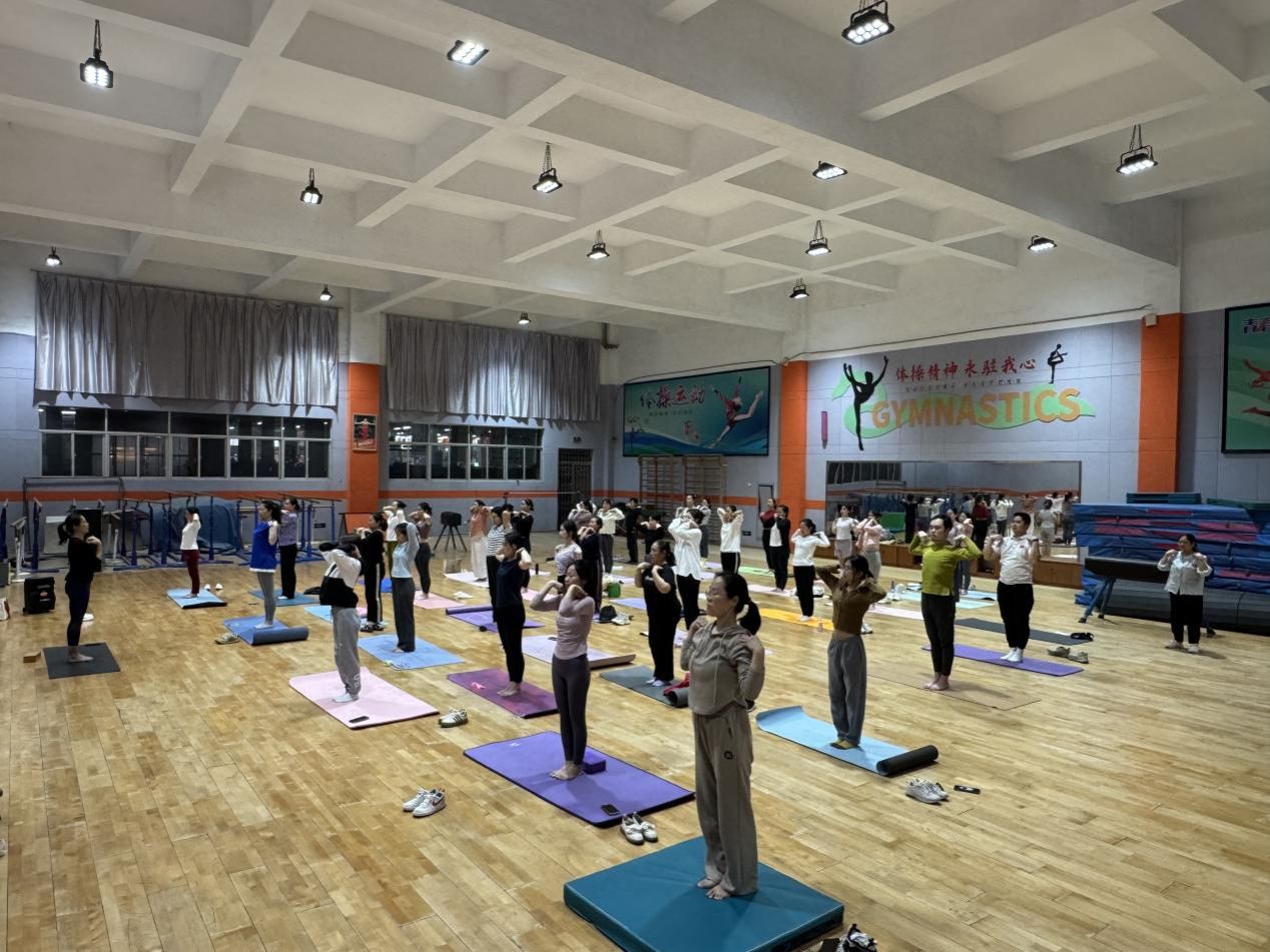 课程中,李琼教练以“动与静结合、身与心同修”为核心理念,通过科学编排的动作体系,帮助教职工释放压力。从“树式呼吸”到“脊柱流动”,从冥想引导到腹式呼吸训练,参与者在一呼一吸间逐渐舒展紧绷的肌肉,在体式转换中感受能量流动。一位参与教师表示:“课程仿佛一场身心重启,久坐的僵直感被温柔化解,思绪也回归清澈。”李琼教练表示:“瑜伽不仅是肢体锻炼,更是对自我觉察能力的培养,这将助力教师以更平和的状态面对工作和生活。”