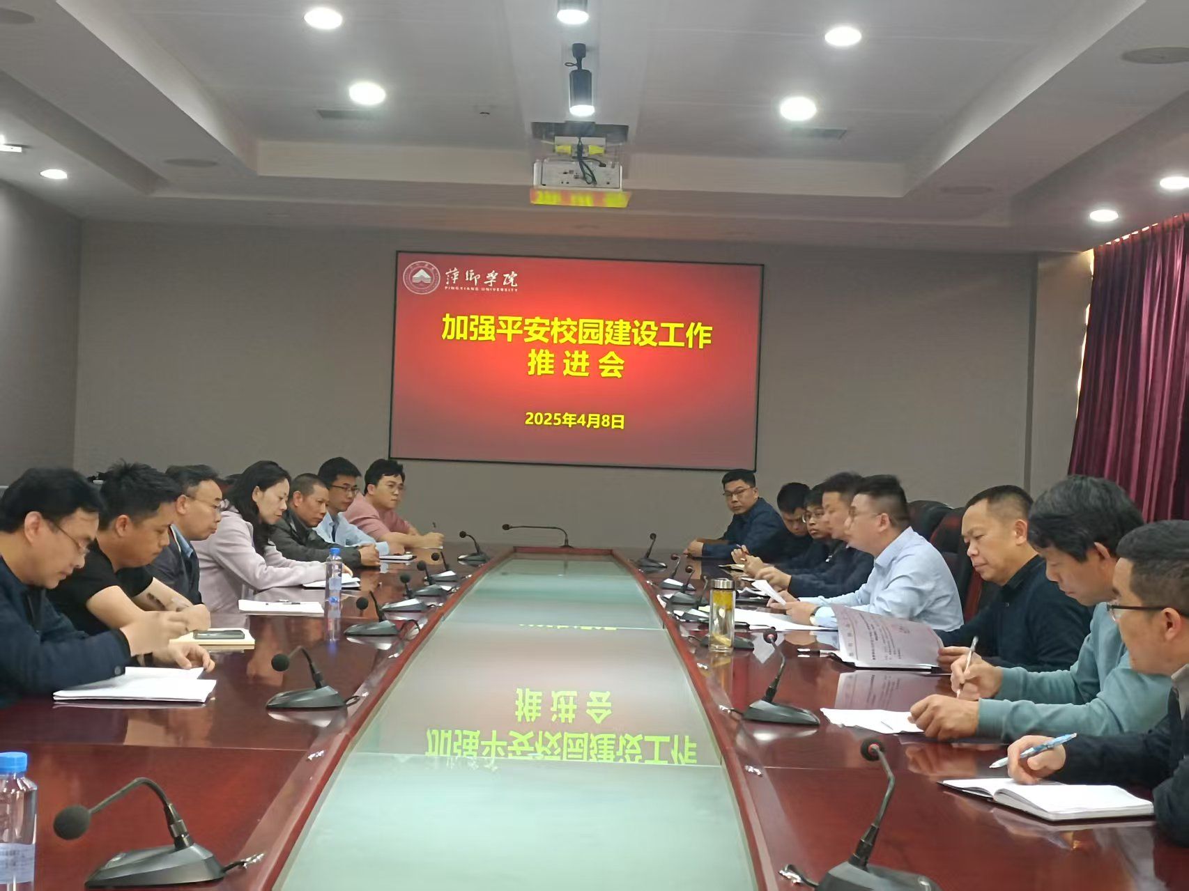 为认真贯彻上级主管部门关于做好近期学校安全稳定工作的安排部署,深入推进我校平安建设工作落到实处,全力维护校园平安稳定态势。4月8日上午,我校在至善楼第二会议室召开了加强平安校园建设工作推进会。会议由党委委员、副校长刘培圣主持,保卫处、教务处、学工处、后勤处等责任单位负责人参加会议。