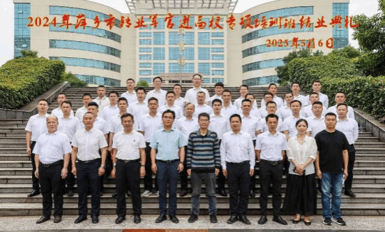 2025年5月6日上午,2024年萍乡市转业军官进高校专项培训班结业典礼在萍乡学院鼎新楼继续教育学院培训室举行,校党委委员、副校长黄志开,萍乡市退役军人事务局党组书记、局长龙军,萍乡市退役军人事务局党组成员、副局长何世萍,继续教育学院党总支书记肖国正出席,继续教育学院院长黄红华主持。
