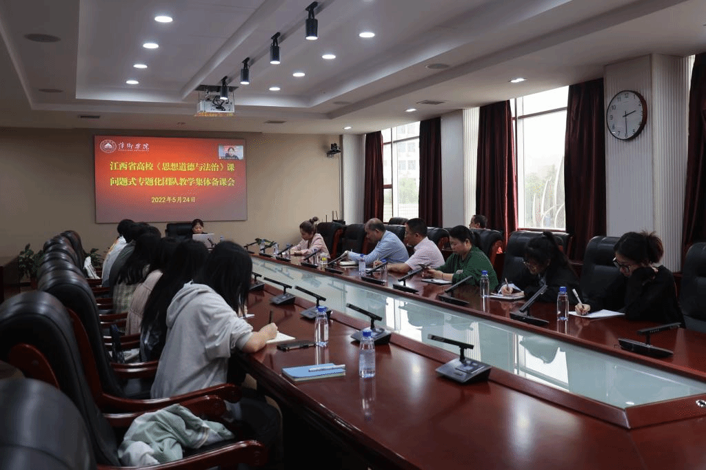5月24日下午,校党委副书记、校长史焕平参加江西省高校《思想道德与法治》课问题式专业化团队教学改革集体备课会。此次集体备课会以视频会议的形式召开。我校作为此次集体备课会承办单位在第一会议室设主会场。党委委员、组织部部长陈永秀及马克思主义学院师生代表参加现场集体备课会。全省部分思政课教师代表参加线上集体备课会。集体备课会由马克思主义学院院长朱红英主持。