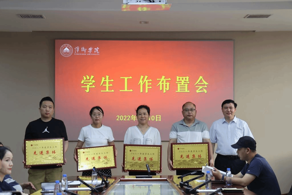 会议表彰了“2021年度学生工作先进集体”和2021年“学党史、重传承、勇担当”主题教育活动先进集体。学工处处长肖国正就前期学生工作作了汇报并布置了放假前以及暑假的具体工作。