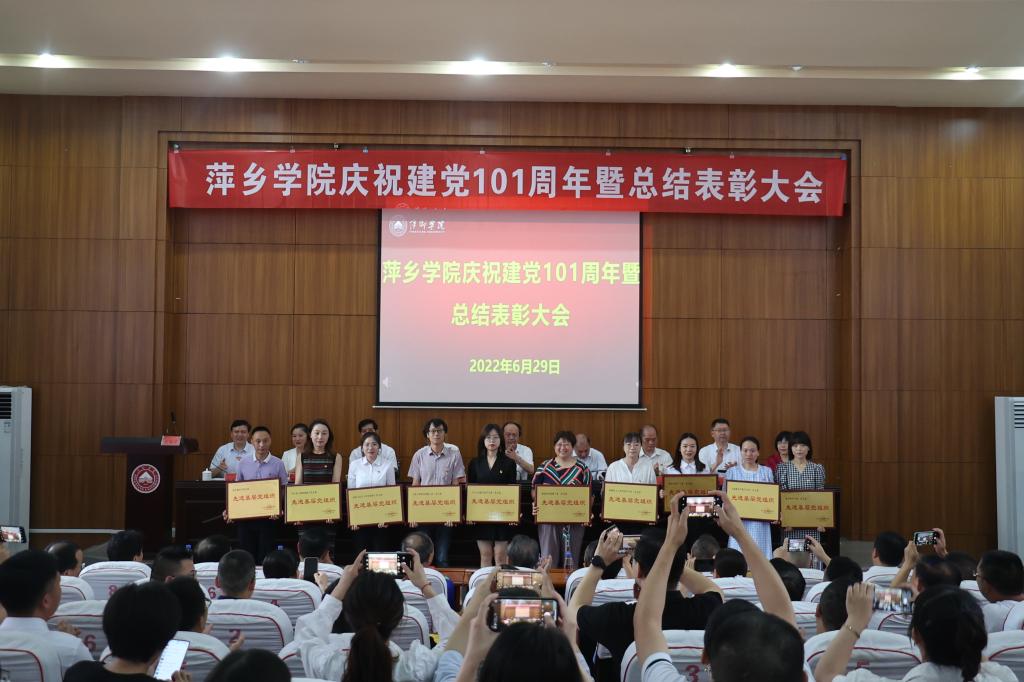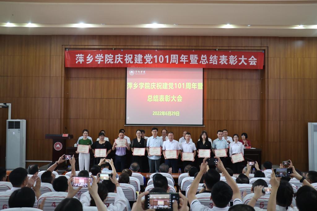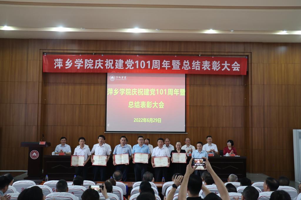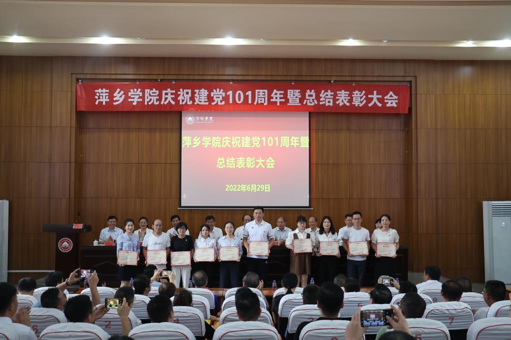 6月29日,我校在至善楼学术报告厅召开庆祝建党101周年暨表彰总结大会。全体在家校领导出席会议。各二级学院党委书记、副书记,机关党委书记、副书记,各基层党支部书记以及受表彰的在党50周年的老同志、“两优一先”同志、优秀处级干部参加会议。会议由校党委副书记邱晓辉主持。