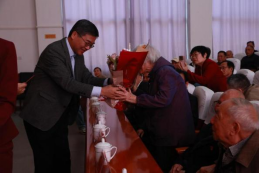 会议第一项议程是为年满80、90周岁的寿星们举行集体祝寿仪式。邱晓辉为邓德平等老寿星一一送上鲜花和慰问红包,表达学校对老同志们深深的敬意与祝福。一束鲜花,一份真情,愿老同志们如青松常翠,福寿绵长。