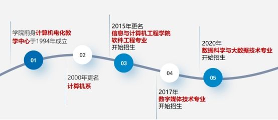 信息与计算机工程学院前身为计算机电化教学中心,成立于1994年,当年9月开始招生,负责计算机专业教学科研和全校公共计算机课程教学,2000年更名为计算机系,2015年更名为信息与计算机工程学院。学院软件工程本科专业2015年开始招生,数字媒体技术本科专业2017年开始招生,数据科学与大数据技术本科专业2020年开始招生。学院自创办以来,办学规模不断扩大,办学条件逐步改善,育人环境不断优化,整体实力不断提高。