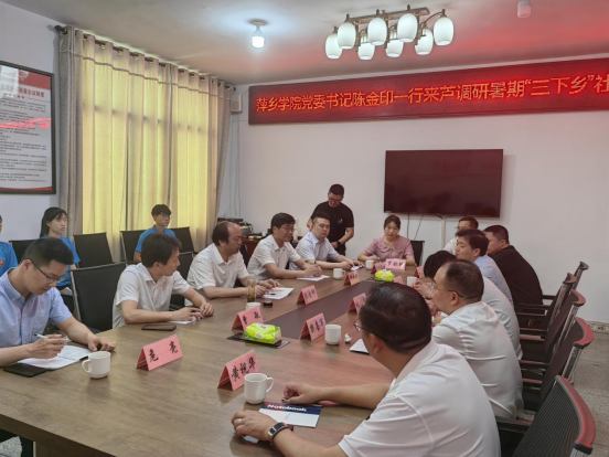 座谈会上,陈金印对芦溪县委、县政府和张佳坊乡党委、政府以及张家坊乡学校对我校大学生暑期“三下乡”社会实践活动给予的大力支持和指导表示衷心感谢。他表示,我校历来高度重视暑期“三下乡”社会实践活动,今年组建了14支重点实践团队,在理论普及宣讲、乡村振兴促进、发展成就观察、党史学习教育等方面开展社会实践活动,同时还组织了红色走读、红色名村调研等专项活动。他要求参与社会实践的同学们要深刻领会开展暑期“三下乡”社会实践活动的重要意义, 在社会实践中强化使命担当,把活动做实做强,珍惜难得的锻炼机会,将课堂所学知识与社会实践相结合,不断提升综合素质,充分展现新时代萍院学子的精神风貌。