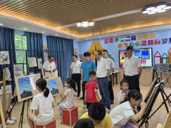 7月6日上午,校党委书记陈金印来到芦溪县张佳坊乡走访调研我校大学生暑期“三下乡”社会实践活动,看望慰问我校参加社会实践活动的师生。校党委副书记邱晓辉,党政办、团委负责人随同,芦溪县县委副书记刘勇,县委常委、宣传部长樊喜军,芦溪县教育局、张佳坊乡以及张佳坊学校的负责人陪同调研。