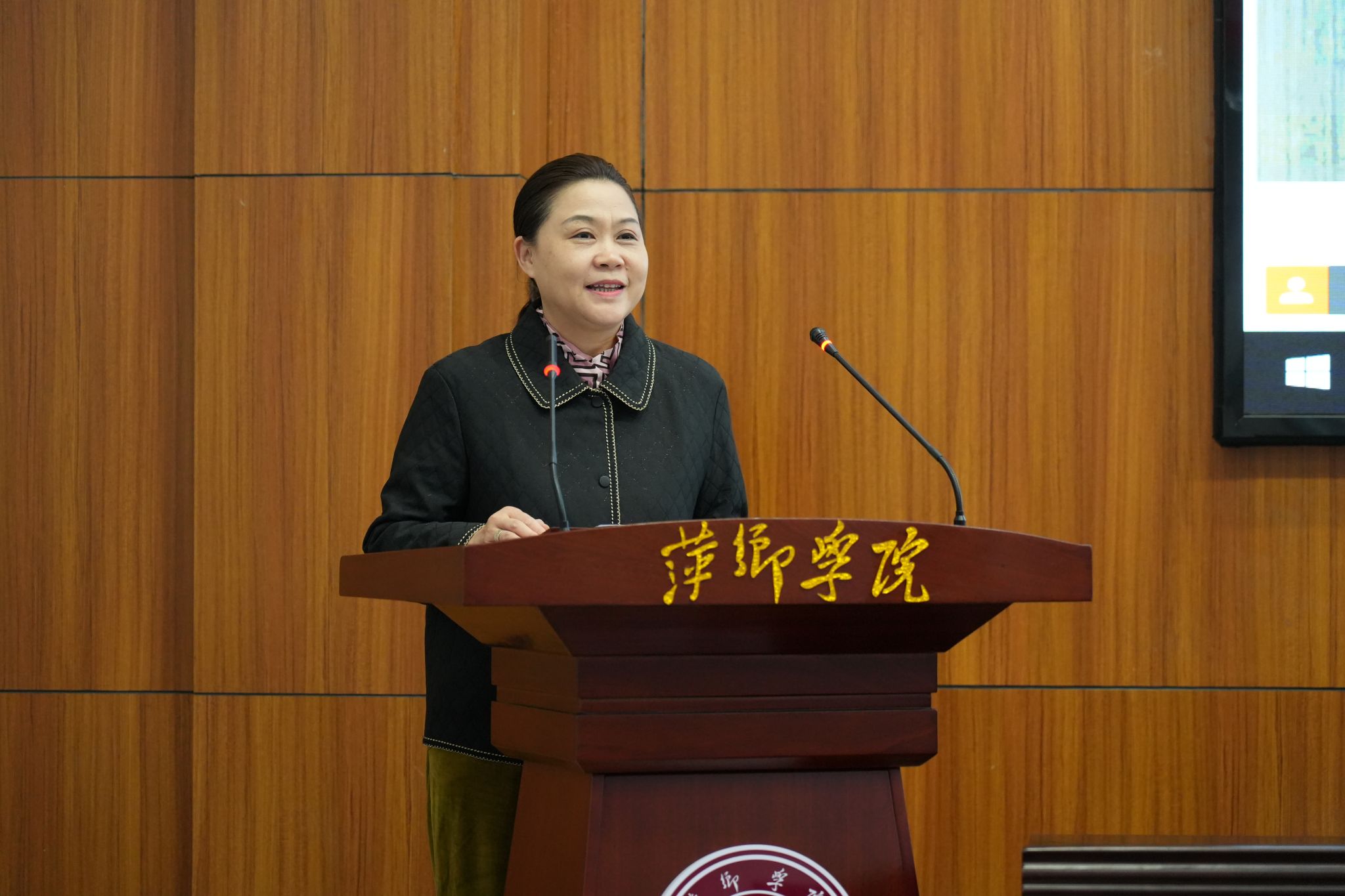 朱艳珍代表萍乡市委、市人民政府,向莅临本次会议的各位专家和领导表示衷心的感谢。她指出,当前,萍乡正处在产业转型升级、高质量发展的关键时期,迫切需要更多高素质应用型人才作为支撑。本科教育教学审核评估线上启动会,既是对萍乡学院办学水平和教育质量的一次全面检验,更是推动学校强化内涵建设、提升育人能力、增强服务地方发展能力的重要契机。她表示,萍乡市委、市政府将一如既往地全力支持萍乡学院的建设与发展,在政策支持、资源配套、人才引进等方面提供更优服务,积极推动校地资源共享、优势互补,构建协同育人、共赢发展的校地融合新格局。