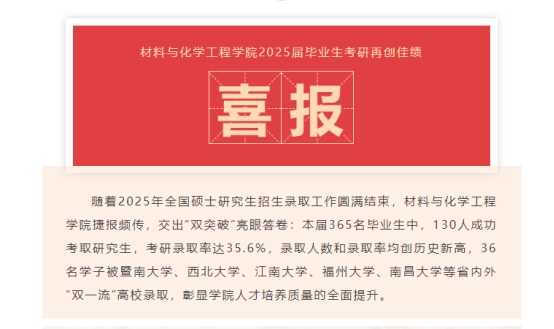 深造领航铸标杆。近5年,每年考研录取率保持在30%,其中25%以上考入西北工业大学、大连理工大学、兰州大学等“双一流”学校和研究机构深造,考研录取率连续八年稳居学校前列。