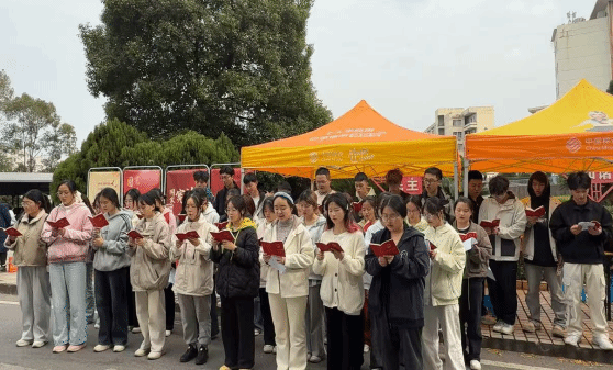 宪法日当天,商学院知识产权教研室教师们自发为学校师生解答法律疑问,解决实际纠纷。宣传活动现场还进行了“宪法晨读”活动,同学们一声一句地宪法宣读,进一步感受宪法的权威和力量,对公民拥有的权利和应当履行的义务有了更深层次的了解。