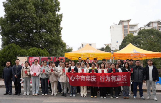 在学校文廷式小广场,来自商学院知识产权专业的学生们自发走进宣传一线,通过发放宪法宣传册、举行宪法调查问卷比赛、宪法知识竞赛和宪法横幅签名活动等活动,向全校同学分享所学,充分调动起了师生们的积极性,让师生们对宪法中的条例有了更深层次的认识。同时,将学校反诈、消防安全等主题宣传与宪法知识竞答相互交融,精准对接学生们的校园生活需求,让学生们通过身边的案例筑牢安全防线。“作为法律相关专业的学生,我们不仅要自己学法知法懂法,更要做好法律的捍卫者和传播者,告诉身边人用法律守护自己和同学的成长。”来自商学院知识产权2501班的余辉同学这样说道。