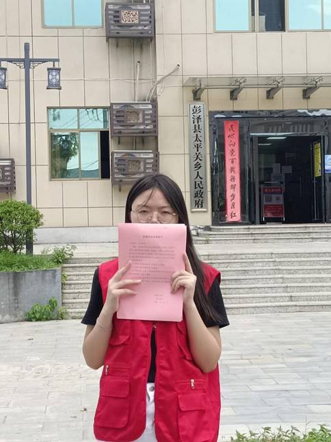 张格格的主要工作是协助太平关团委为本地居民宣传防溺水和防诈骗的相关知识。起初,她对自己的工作无从下手,但她牢记太平关团委对她的希望和嘱托,积极学习工作方法,有效的与本地居民沟通,使得活动顺利开展。经过这段时间的锻炼,她在思想方面有了很大的进步,沟通和解决问题的能力也有所提高。张格格说到:“我很庆幸能够参与此次社会实践活动,同时作为共青团员的我,也希望能为家乡的发展尽一份绵薄之力。”
