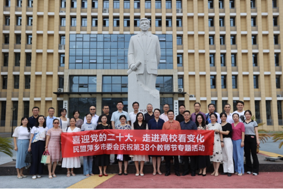9月7日,我校党委统战部和民盟萍乡市委会联合举办主题为“喜迎党的二十大,走进高校看变化”的庆祝第38个教师节专题活动。7日上午,民盟市委会机关干部带领盟员教师走进校园,了解我校的沿革与嬗变,感受我校与时代同频共振、积极服务地方经济社会发展的担当与作为。校党委委员、统战部部长王林清出席活动。民盟市委会副主委黄文峰、郭慧、张倩与20多位盟员教师代表参加活动。