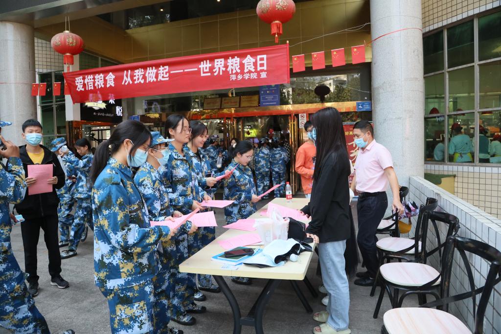 我校在一食堂门口开展2022年世界粮食日和全国粮食安全宣传周活动。校党委委员、副校长刘卫林莅临活动现场指导。宣传周活动由后勤处主办。