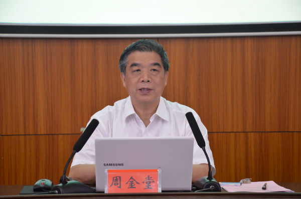 周金堂在讲话中指出,本次轮训班的意义主要在于凝聚共识,统一思想;加强理论武装,提高政治站位;不忘初心,牢记使命,发挥高校党员领导干部带头示范作用。他强调,学习贯彻习近平新时代中国特色社会主义思想和党的十九大精神,要原原本本的学好党的十九大报告、新党章、习近平总书记系列重要讲话精神等内容;要对标对表,学深悟透,在切实学懂上下功夫;要结合工作实际,融会贯通,在切实弄通上下功夫;要结合年度考核目标,实干兴校,在切实做实上下功夫。他最后还对集中轮训期间的学风和培训纪律作了具体要求。