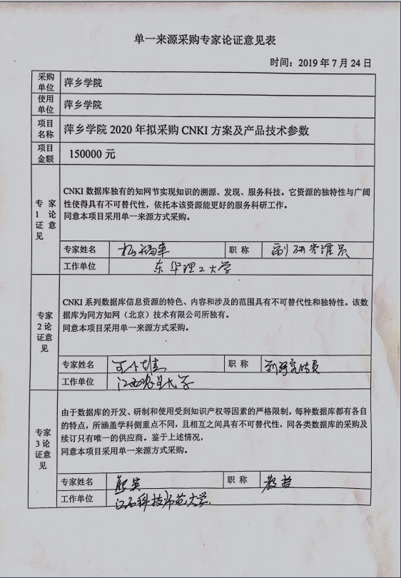 萍乡学院2020年CNKI系列数据库采购项目 |