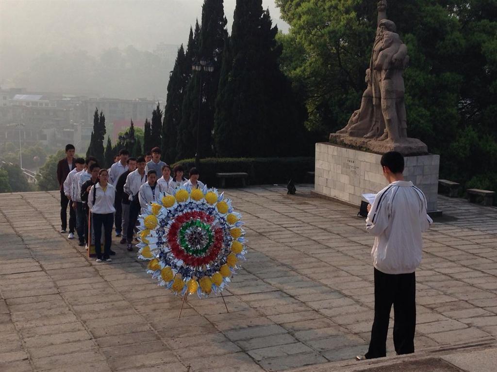 活动开始,大家来到烈士纪念碑前,系代表致词并献上花圈,向烈士三鞠躬,以示对烈士最崇高的敬意,活动结束,同学们又怀着对烈士们的怀念和崇敬之情参观了烈士墓。
