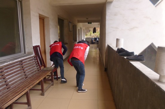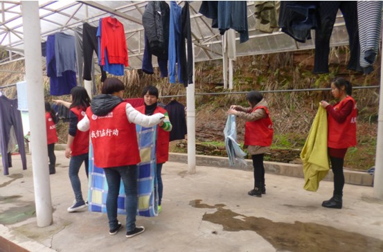 在这个阳光明媚的下午,首先,义工志愿者和经管系学生会干部帮老人们打扫楼梯和走廊,清理院子里的垃圾。帮老人们收晒干的床单并叠好,大家一起行动起来,在劳动之余还会和老人聊天。然后便是陪老人唱歌,聊天,在和老人的交谈中,让大家感受到老人们的和蔼可亲。活动最后在院子里和老人们合影留念。