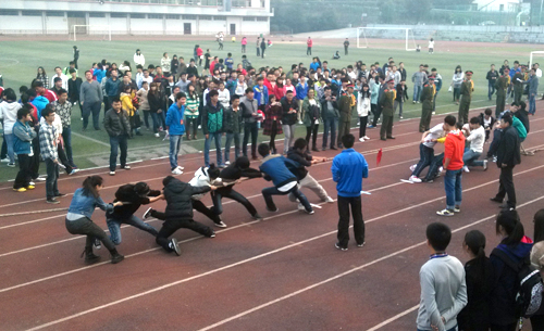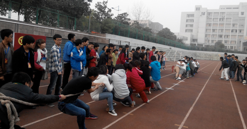 培训课结束后,在场的学生骨干一同前往田径场观看拔河比赛,接受团队精神教育。经过紧张激烈的比赛,最终体育系荣获一等奖,数学系荣获二等奖,经管系、政法系分获三等奖。刘德平、谢伟萍向获奖选手颁发了证书。