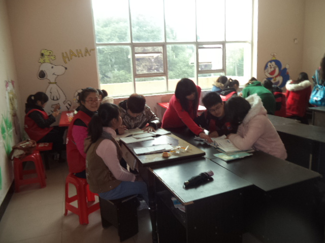 当天上午8:50,每位义工志愿者及吉他社成员各带领一名小朋友进行以对一辅导。小朋友门非常开心,主动牵着哥哥姐姐前往教室,穿着红色志愿服的哥哥姐姐俨然成了一名名严谨教学的师者他们认真解答小朋友的问题,仔细翻阅习题册,耐心指出并纠正小朋友的每个错误,教室里回荡着智慧之音,课间,各志愿者一改“严肃面孔”。在操场上与小朋友门进行大“PK”,在乒乓球桌上,一个个“快、准、狠。”的发球让大哥哥应接不暇,另一边,老鹰抓小鸡这个永不过时的游戏也在进行中。在这荡漾青春活力的小操场上传来阵阵喝彩声声笑语。